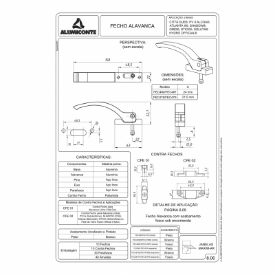 FECHO ALAVANCA DIR PR L.CITTA DUE PELE VIDRO II ALCOA ATLANTA BELMETAL HYDRO FEC480