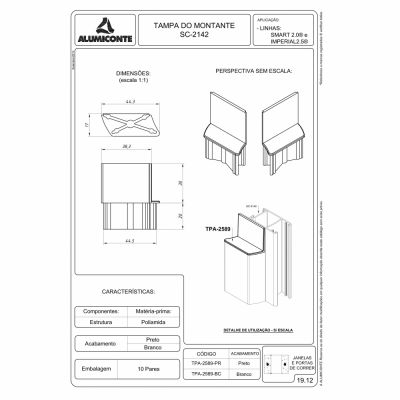 Modelo: TAMPA DO MONTANTE INF SUP POLIAMIDA EB P JANELAS E PORTAS DE CORRER PERFIL SC 2142 L.SMART 2.0