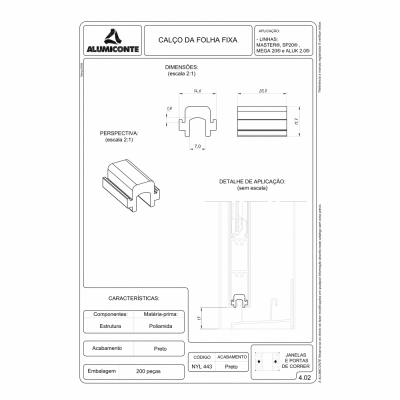 CALCO DA FOLHA FIXA POLIAMIDA PR P JANELAS E PORTAS DE CORRER L.MASTER MEGA 2.0