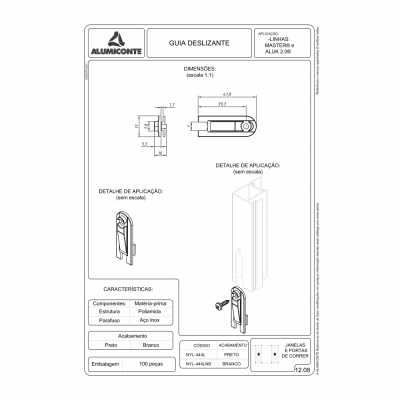 GUIA DESLIZANTE POLIAMIDA EB P JANELAS E PORTAS DE CORRER L.MASTER