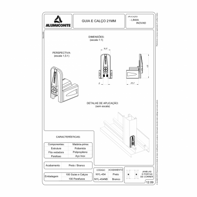 GUIA E CALCO 21MM POLIAMIDA EB P JANELAS E PORTAS DE CORRER L.INOVA