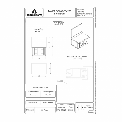 TAMPA DO MONTANTE SU 043 044 PR P PORTAS DE CORRER L.SUPREMA