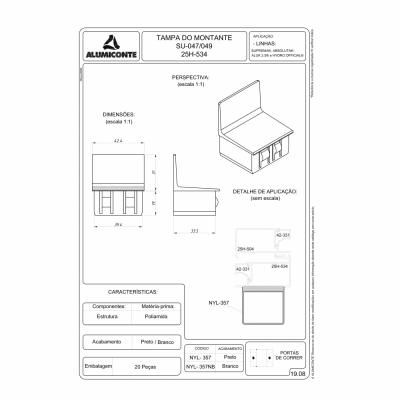 TAMPA DO MONTANTE SU 047 049 25H 534 P PORTAS DE CORRER PR L.SUP HYDRO