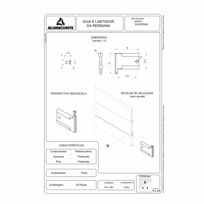 GUIA E LIMITADOR DA PERSIANA POLIAMIDA PR L.GOLD MASTER INOVA SUPREMA MEGA 2.0 MEGA 2.5 MEGA 3.2