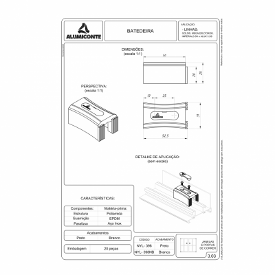 BATEDEIRA POLIAMIDA PR P JANELAS E PORTAS DE CORRER L.GOLD MEGA 3.2