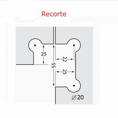 Modelo: T1315 SUPORTE PARA UNIAO DE DOIS OU TRES VIDROS EM (L) COM BATENTE